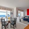 Die Wohnfläche verteilt sich bequem auf eine Ebene und bietet einen großzügigen, offenen Wohn- und Essbereich mit Kamin, eine separate, voll ausgestattete Einbauküche sowie drei Schlafzimmer und zwei Badezimmer. Alle Räume verfügen über direkten Zugang zum Außenbereich, was für eine besonders offene, lichtdurchflutete Atmosphäre sorgt.