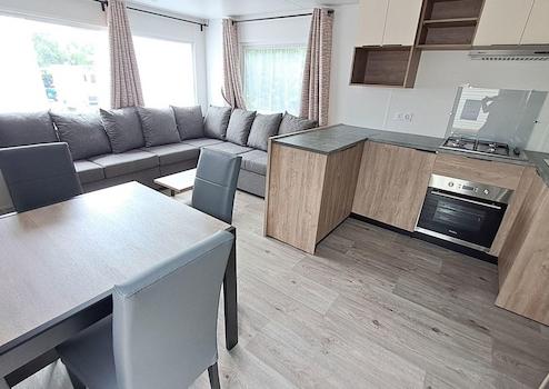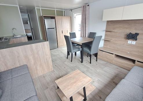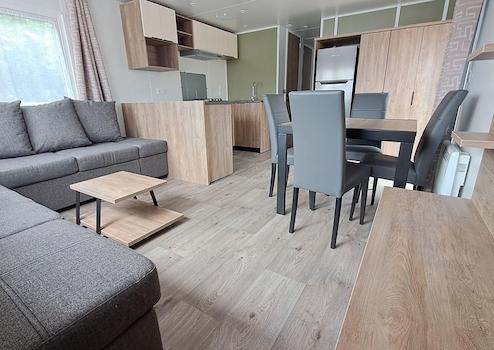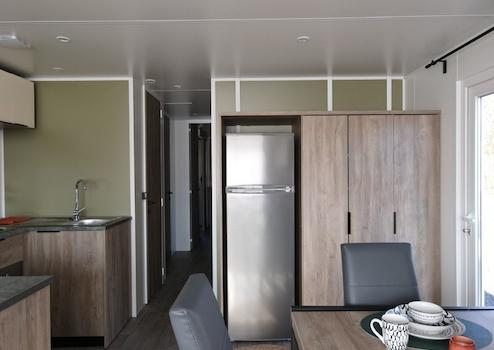 Genießen Sie Ruhe, Komfort und Natur? Dieses bezugsfertige Rapidhome Soleia (Baujahr 2025) steht auf einem großzügigen Grundstück im grünen Parkteil Waterwijck – in der Nähe von Strand und See. Das Chalet ist komplett eingerichtet und verfügt über 2 geräumige Schlafzimmer, einen gemütlichen Wohnbereich mit offener Küche und Essecke, ein modernes Badezimmer, ein separates WC und eine großzügige Veranda von 7,5 m x 3 m. Ideal für Paare oder kleine Familien, die Wert auf Komfort und eine entspannte Atmosphäre legen. ✔ Komplett eingerichtet – inklusive Inventar ✔ 2 Schlafzimmer mit bequemen Betten und Stauraum ✔ Stilvolles Wohnzimmer mit Essecke ✔ Küche mit u.a. Mikrowelle, Kühlschrank und Stauraum ✔ Badezimmer mit Dusche und Waschbecken ✔ Separates WC ✔ Große Veranda (7,5 x 3 m) ✔ Auf einem großzügigen Grundstück in Waterwijck installiert Sofort verfügbar – inklusive MwSt., Aufstellung, Anschluss und Veranda Besichtigen Sie das Chalet vor Ort oder kontaktieren Sie unser Verkaufsteam – wir beraten Sie gerne!
