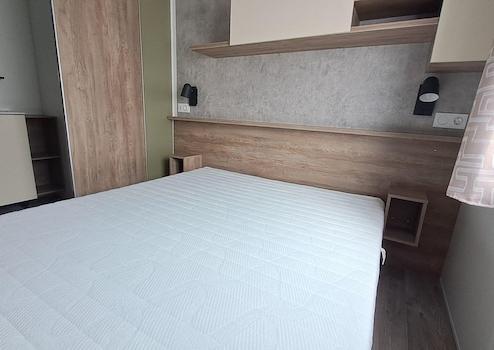 Das Hauptschlafzimmer bietet ein bequemes Doppelbett, einen großen Schiebetürenschrank, Spiegel und praktische Staumöglichkeiten. Vom Schlafzimmer aus gelangen Sie direkt ins eigene Badezimmer.