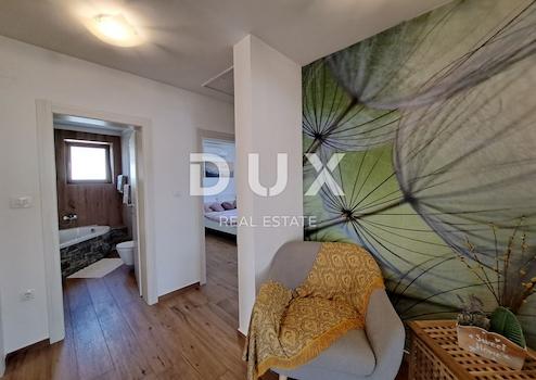 Nur zehn Kilometer vom Zentrum von Opatija entfernt, einer elitären Küstenstadt, die für ihre eleganten Villen, wunderschönen Parks und die Strandpromenade bekannt ist – ein idealer Ort zum Entspannen und Leben – bieten wir Ihnen eine Luxusvilla zur Langzeitmiete. Die hervorragende Lage dieser hochwertigen Immobilie, nur zehn Autominuten von den Stränden und dem Zentrum von Opatija, einen Kilometer von der Autobahn entfernt und in einer ruhigen Umgebung gelegen, sind zusätzliche Werte dieser Immobilie. Die Villa besteht aus zwei Wohneinheiten. Die 140 m² große Wohnung im ersten Obergeschoss besteht aus einem Eingangsbereich, einem Wohnzimmer mit Essbereich, einer geräumigen Küche, drei Schlafzimmern, einem praktischen Abstellraum und zwei Bädern. Von der Küche und dem Wohnzimmer aus haben Sie Zugang zu einer überdachten Terrasse. Die 160 m² große Erdgeschosswohnung, die sich im Endstadium der Renovierung befindet, verfügt im Gegensatz zur Wohnung im ersten Stock über drei Badezimmer und im Kellergeschoss befinden sich auf weiteren 100 m² ein Fitnessraum, eine Sauna und ein Gesellschaftsraum – eine Taverne. Den Mietern steht ein reich verzierter 1.500 m² großer Garten mit Garten, Kinderspielplatz und Swimmingpool sowie eine Außentaverne mit Küche, Terrasse und Grill zur Verfügung. Die Villa ist solide gebaut und luxuriös ausgestattet und alle verbauten Materialien sowie Boden- und Wandbeläge wurden nach höchsten Standards ausgewählt. Der umzäunte Hof bietet Platz für mehrere Autos. Dieses luxuriöse Anwesen, ideal für ein komfortables Familienleben, bietet die perfekte Kombination aus Komfort, Privatsphäre und erstklassigem Design. Sehr geehrte Mietinteressenten, wir freuen uns über Ihr Interesse an den Objekten aus unserem Angebot. Für weitere Informationen und um einen Besichtigungstermin für die Immobilie zu vereinbaren, kontaktieren Sie uns bitte. Eine Besichtigung einer Immobilie ist nur mit Abschluss eines Immobilienmaklervertrages möglich. Unter Beachtung des Datenschutzgesetzes und des Immobilienmaklergesetzes werden die Interessen des Eigentümers gewahrt.