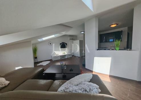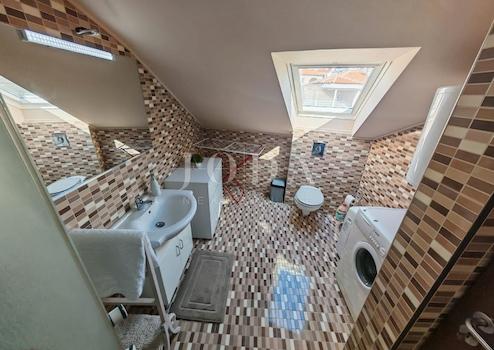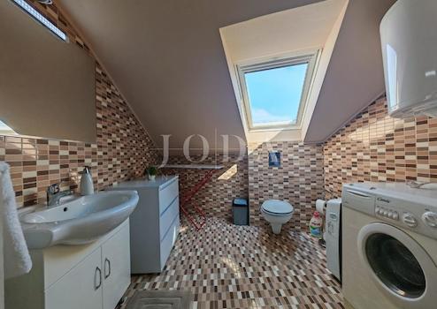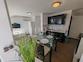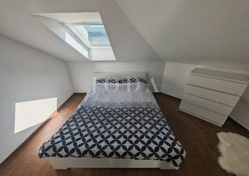 Die Wohnung verfügt über ein Badezimmer, zwei Schlafzimmer und ein geräumiges Wohnzimmer mit angeschlossener Küche und Esszimmer. Die Wohnungsfläche beträgt 70 m², aufgrund der Hanglage sind jedoch 50 m² eingetragen.