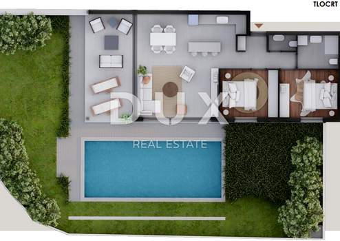 In außergewöhnlicher Lage, nur 50 Meter von einem wunderschönen Sandstrand mit Café entfernt, befindet sich dieses moderne Neubaugebäude mit insgesamt acht Apartments, perfekt integriert in eine ruhige und luxuriöse Umgebung. Das Gebäude besticht durch modernes Design und höchste Baustandards – die gesamte Außenkonstruktion besteht aus Stahlbeton, was höchste Festigkeit, Langlebigkeit und Witterungsbeständigkeit gewährleistet. Alle Apartments bieten Meerblick, elektrische Rollläden, Moskitonetze, dreischichtiges Glas und Hebe-Schiebe-Wände, die für viel Licht und ein ungestörtes Naturerlebnis sorgen. Das Apartment S2 befindet sich im Erdgeschoss und verfügt über zwei Schlafzimmer, ein modernes Badezimmer mit Fußbodenheizung, ein zusätzliches WC, ein Wohnzimmer mit Zugang zu einer überdachten Terrasse und einem privaten Garten mit Pool und Meerblick sowie einen Abstellraum. Ein privater Parkplatz ist ebenfalls vorhanden. Alle Zimmer sind klimatisiert, und modernste Fenster und Türen sorgen für maximalen Komfort. Das Gebäude verfügt über drei Wohnungen im Erdgeschoss, jeweils mit Garten und Terrasse, zwei Wohnungen verfügen zudem über einen eigenen Pool. Die Penthouse-Wohnungen im zweiten Stock bieten zusätzlich begehbare Dachterrassen mit Panoramablick. Der Verkäufer ist eine juristische Person, was bedeutet, dass der Käufer von der Grundsteuer befreit ist. Die geplante Fertigstellung ist im Herbst 2026. Die Lage dieser Immobilie steigert den Wert zusätzlich durch die Nähe zur historischen Stadt Nin, dem beliebten Ferienort Zaton, der Insel Vir und der wunderschönen Stadt Zadar, die nur zwanzig Autominuten entfernt ist. Privlaka ist ein zunehmend gefragter Ort für Urlaub und Leben – eine Kombination aus Ruhe, natürlicher Schönheit und moderner Infrastruktur. Für weitere Informationen und Besichtigungen kontaktieren Sie uns bitte – wir helfen Ihnen gerne, Ihr Traumhaus am Meer zu finden.