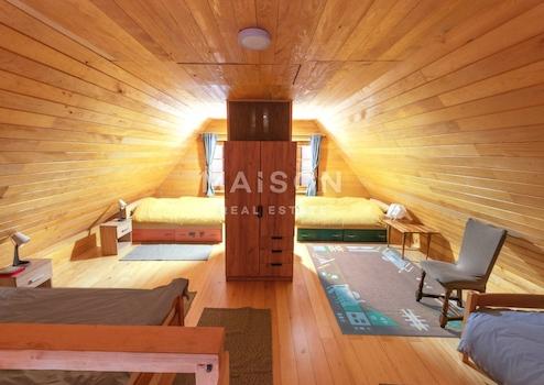 Das Haus erstreckt sich über drei Etagen. Im Erdgeschoss befindet sich eine modern gestaltete und voll ausgestattete offene Küche mit Essbereich, ein Wohnzimmer mit Kamin, der dem Raum besondere Gemütlichkeit verleiht, ein Abstellraum, ein Flur und eine Toilette. Im ersten Stock gibt es ein Vorzimmer, eine Infrarotsauna, ein Badezimmer mit Dusche, zwei Schlafzimmer, jeweils mit Doppelbett, sowie einen Balkon oder eine Loggia mit Blick auf die umliegende Natur. Im Dachgeschoss befindet sich ein großzügiges Schlafzimmer mit vier Betten und Zugang zu einem Balkon oder einer Loggia, während der Dachboden zusätzlichen Stauraum bietet.