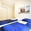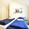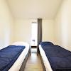 Das zweite Schlafzimmer ist kompakt aber funktional mit zwei komfortablen Einzelbetten eingerichtet. Dieser Raum ist perfekt für Kinder oder Gäste geeignet. Das Fenster sorgt für natürliches Licht und Belüftung. Die praktische Aufteilung maximiert den verfügbaren Raum optimal. Die moderne Ausstattung und neutralen Farben passen perfekt zum Rest des Hauses