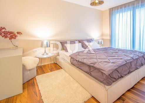 Zum Verkauf steht eine luxuriös eingerichtete Zwei-Zimmer-Wohnung in Opatija mit einer Wohnfläche von 105 m², einem Garten und einer schönen Terrasse mit spektakulärem Meerblick. Die Wohnung ist wie folgt aufgeteilt: Flur, zwei geräumige Schlafzimmer, zwei elegante Badezimmer, ein Ankleidezimmer, ein Wohnzimmer mit moderner Küche aus hochwertigen Materialien und ein Esszimmer. Das Besondere an dieser Wohnung ist die beneidenswert große Terrasse mit Panoramablick auf das Meer und die Kvarner-Bucht, die ein besonderes Kaffee- oder Entspannungserlebnis bietet. Zur Wohnung gehören außerdem zwei Garagenstellplätze sowie ein Abstellraum, der für Funktionalität und Ordnung sorgt. Die Wohnung wird über eine Wärmepumpe beheizt, außerdem sind Klimaanlagen installiert. Die Wohnung befindet sich in einem Wohngebäude, umgeben von einem gepflegten, eingezäunten Garten und einem Gemeinschaftspool für die Bewohner. Die Wohnung wird mit Designermöbeln verkauft. Diese neu gebaute Wohnung bietet unglaublich viel Wohnraum mit hochwertiger Ausstattung und atemberaubendem Meerblick und ist nur 150 Meter vom Meer entfernt.