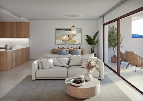 Dieses Bauprojekt im traditionellen mallorquinischen Stil ist bis ins kleinste Detail auf Ihren Komfort ausgerichtet. Entsprechend der neuesten europäischen Qualitätsstandards für Neubauten garantieren wir maximale Schalldämmung und thermische Isolierung der Häuser. Die Küche wird voll möbliert und mit Elektrogeräten der Marke Siemens oder einer vergleichbaren Marke ausgestattet übergeben. Sie verfügt über einen Ofen, einen Induktionsherd und einen Dunstabzug sowie einen Einbaukühlschrank und eine Einbaugeschirrspülmaschine. Die Bäder sind mit hängenden Waschtischen aus Holz des Herstellers Kyrya, bodengleichen Duschtassen und Unterputzarmaturen von Tres ausgestattet. Für alle Räume der Wohnungen wurden großformatige Porzellanfliesen der Marke Saloni ausgewählt. Im Außenbereich werden die gleichen Fliesen in der rutschfesten Ausführung verlegt. Zu jeder Wohneinheit gehören zudem ein oder zwei Tiefgaragenplätze.