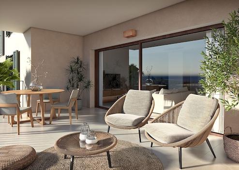 Appartements mit 2 Schlafzimmern, 2 Bädern, Klimaanlage, Gemeinschaftspool, Tiefgaragenstellplatz und Meerblick