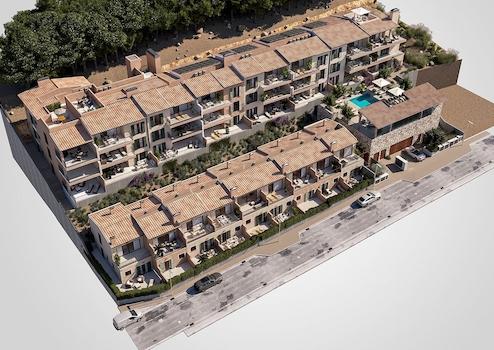 Die Wohnanlage besteht aus 23 Appartements und 9 Reihenvillen mit 2 oder 3 Schlafzimmern und verspricht mit ihrem hohen Wohnkomfort echte Lebensqualität. Die Appartements haben 2 oder 3 Doppelschlafzimmer und zwei voll ausgestattete Bäder. Einige der Wohnungen bieten zudem einen atemberaubenden Blick auf das Meer und die Ostküste Mallorcas. In Sichtweite befindet sich ebenfalls die majestätische Burg von Capdepera, die im 14. Jahrhundert von König Jaime II. erbaut wurde und hoch über der spektakulären Landschaft der Umgebung thront. Die Reihenvillen verfügen über zwei Schlafzimmer und zwei voll ausgestattete Bäder. Die großzügigen Terrassen, eine im Erdgeschoss und eine im Obergeschoss, laden zu herrlichen Momenten mit der Familie oder Freunden unter freiem Himmel ein. Die Outdoor-Gemeinschaftsbereiche in der Wohnanlage bieten Komfort und Erholung. Den Bewohnern der Anlage stehen ein Gemeinschaftspool, ein mit heimischen Pflanzen angelegter Garten und ein Entspannungsbereich zur Verfügung. Die Wohnanlage liegt im Herzen eines traditionellen mallorquinischen Ortes, der mit mediterraner Architektur, authentischem Dorfleben und vielseitiger Gastronomie begeistert.