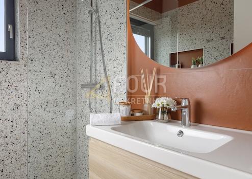 Der Wert der Immobilie wird durch den gestalteten und eingezäunten Garten von 92m2 mit privatem Pool, Grillplatz und zwei Parkplätzen im Eigentum erhöht.