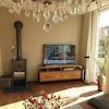 Sehr leichtes Durchgangszimmer mit einem massiven Holzboden. Anschluss für einen Holzofen. Der Schornstein dient auch für den Außenkamin.
