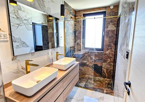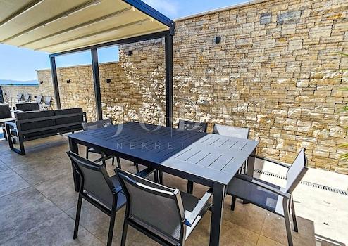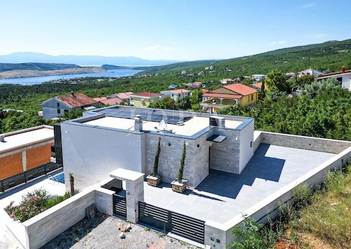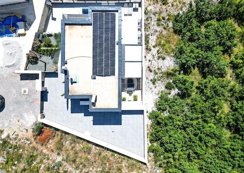 Neu gebautes Familienhaus in moderner Architektur mit Panoramablick auf das Meer. Hervorragend gestalteter Grundriss des Hauses mit 5 Schlafzimmern mit jeweils eigenem Bad, Arbeitsbereich, Wellnessbereich, Weinkeller und offenem Wohn- und Küchenkonzept, das nach Öffnen der Schiebewände mit den Außenterrassen zu einem Ganzen verschmilzt.