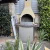 Der Außenbereich ist mit einer Dusche für heiße Tage und einem Kamin für gemütliche Abende ausgestattet.