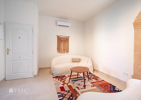 Dieses außergewöhnlich geschmackvoll eingerichtete und vollständig renovierte Apartment befindet sich im ersten Obergeschoss eines charmanten, kleinen Wohnhauses in Cala Gamba – einem begehrten, ruhigen Küstenort unweit von Coll d’en Rabassa. Die gepflegte Wohngemeinschaft umfasst lediglich drei Einheiten und garantiert ein privates, entspanntes Wohnambiente mit angenehmer Nachbarschaft.