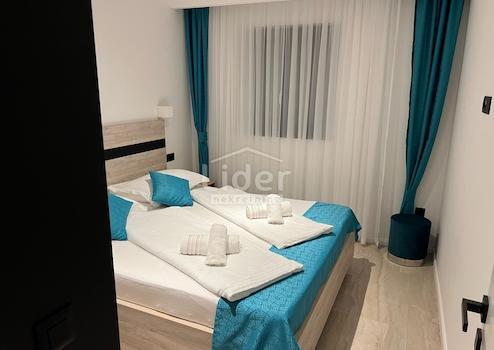 Die Wohnung hat eine Innenfläche von ca. 67m2, einer großen überdachten Loggia von 20 m2, einem Außenparkplatz von 16,5 m2 und einem eigenen Garten von 90 m 2 + Pool von 31 m 2. Die Anlage befindet sich in attraktiver Lage, ca. 100 m vom Meer und dem Strand entfernt.