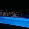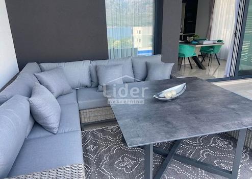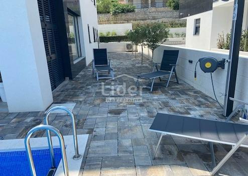 Der Außengarten und der Außenpool sind direkt mit der Wohneinheit verbunden, und der Garten ist vollständig eingezäunt und bietet zusammen mit dem Pool einen Ort zum Entspannen und Genießen. Im Garten gibt es neben dem Pool, der mit blauem Mosaik und weißem Brač-Bordstein ausgekleidet ist, eine Solardusche und einen Holzkamin, und Wärmepumpe zur Poolheizung. Der gesamte Garten der Garten wird dezent mit LED-Beleuchtung beleuchtet und es wurden mediterrane Pflanzen wie Oleander, Pitospora, Lavendel, Rosmarin und hohe Palmen gepflanzt. Die Promenade und das Sonnendeck sind mit weißem Naturstein gepflastert.