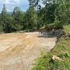 Das Grundstück ist gerodet und bereit für den Bau, mit einer Zufahrtsstraße und herrlichem Blick auf die Waldlandschaft.