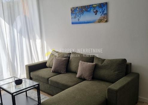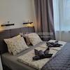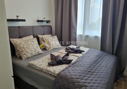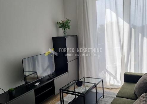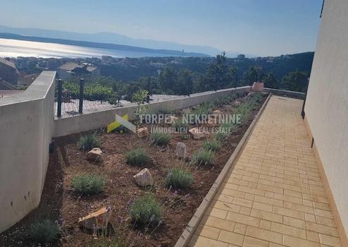 Jede Wohnung besteht aus einem Schlafzimmer, Wohnzimmer mit Küche, Bad und Balkon. Der Balkon bietet einen Blick auf das Meer und die Insel Krk.