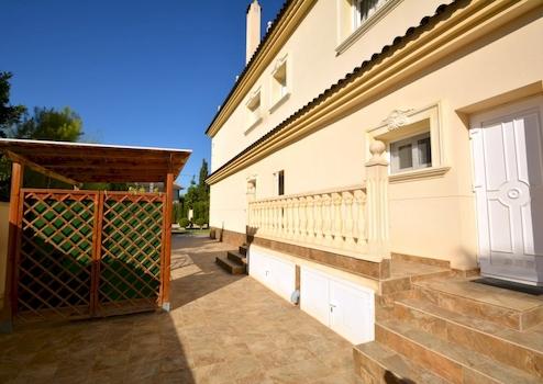 120 m² Dachterrasse mit herrlichem Panoramablick. Schön angelegter Garten mit großem privatem Pool mit Kinderbereich. Gästehaus ist auf dem Grundstück mit einer separaten Wohnung für Gäste oder Hauspersonal gebaut. Das Haus hat ein Badezimmer, eine Küche und eine kleine Sitzecke. Ein weiteres separates Bad ist im Gästehaus vorhanden. Der Technikraum mit allen Maschinen befindet sich im Keller des Gästehauses.