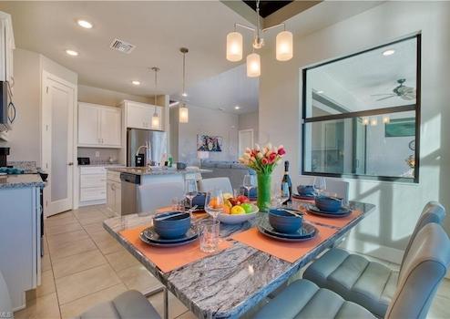 Wunderschönes, komplett möbliertes Poolhaus mit 4 Schlafzimmern auf einem großzügigen, übergroßen Eckgrundstück mit traumhaftem Blick auf sich kreuzende Kanäle. Das Haus wurde 2023 erbaut und bietet durch die Südausrichtung ganztägig Sonne auf dem Pooldeck - ideal zum Entspannen und Genießen des Florida-Lifestyles.