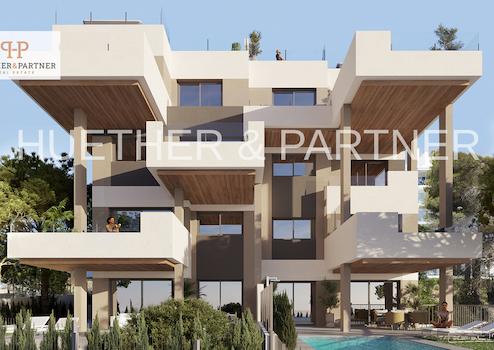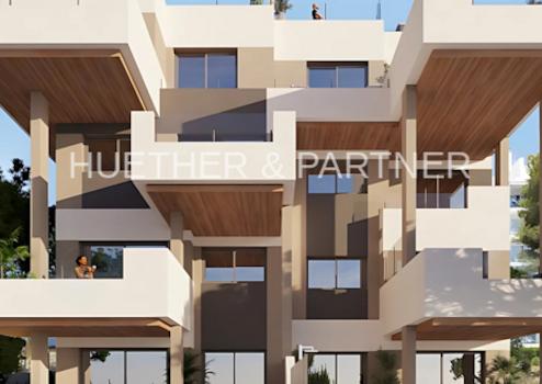 Der moderne Wohnkomplex umfasst 14 hochwertige Wohneinheiten mit 2 oder 3 Schlafzimmern sowie 1 bis 3 Badezimmern. Die Architektur verbindet mediterranen Stil mit zeitgemäßem Design und bietet vielfältige Grundrisse, darunter Wohnungen mit Garten, elegante Penthäuser mit Solarium und Duplexwohnungen mit großzügigem Solarium – ideal für ein modernes, mediterranes Lebensgefühl.