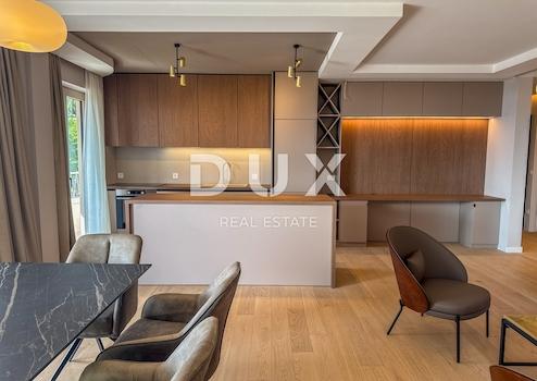 Wir präsentieren eine einzigartige Wohnung im Zentrum von Opatija, gelegen in einem luxuriösen Neubau mit Designermöbeln aus Italien, in einer außergewöhnlichen Lage unterhalb von Nova Cesta – nur 80 Meter Luftlinie vom Meer entfernt. Diese Lage garantiert absolute Ruhe, Meerblick und Privatsphäre, und dennoch sind Sie buchstäblich 60 Sekunden zu Fuß vom Meer und dem Stadtzentrum entfernt. Die Wohnung besteht aus einem offenen Wohnzimmer mit einer eleganten, voll ausgestatteten Küche und einem Esszimmer – der perfekte Ort zum Entspannen und für geselliges Beisammensein mit Familie und Freunden. Zwei geräumige Schlafzimmer verfügen über eigene Badezimmer und Ankleidezimmer und bieten so zusätzliche Privatsphäre und Komfort. Das Wohnzimmer öffnet sich zu einer überdachten 15 m² großen Terrasse mit Panoramablick auf das Meer und die Kvarner-Bucht, dank der Südausrichtung der Wohnung. Die Wohnung ist hochwertig ausgestattet: Fußbodenheizung und Daikin-Wärmepumpe, Schüco-ALU-Tischlerei, erstklassiges Parkett, Keramikfliesen renommierter italienischer Hersteller und zusätzlich durch Sicherheitstüren, eine Alarmanlage und eine Videosprechanlage geschützt. Die Immobilie wird voll ausgestattet und ungenutzt vermietet, bezugsfertig. Ein besonderer Vorteil dieser Immobilie ist der eigene Garageneingang, der für mehr Privatsphäre und Sicherheit sorgt. Im Preis inbegriffen sind außerdem ein Garagenstellplatz sowie ein Außenstellplatz unter der Rampe. Diese exklusive Immobilie befindet sich in unmittelbarer Nähe aller wichtigen Annehmlichkeiten – der Strände Slatina und Lido, der Promenade Lungomare, der Sommerbühne Opatija, des Kulturzentrums Gervais, von Geschäften, Cafés und Restaurants, darunter das berühmte Restaurant Ruzmarin, das nur eine halbe Gehminute entfernt ist. Dank dieser Lage ist kein Auto erforderlich. Verpassen Sie nicht die Gelegenheit zur Langzeitmiete dieser außergewöhnlichen Immobilie mit luxuriöser Ausstattung und atemberaubender Aussicht im Herzen von Opatija.