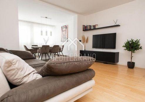 In einem ruhigen und begehrten Viertel von Šubičevac in Šibenik gelegen, bietet dieses geschmackvoll gestaltete und vollständig möblierte Apartment eine Gesamtfläche von 110,66 m². Diese Immobilie ist ideal für alle, die Komfort, modernes Design und großzügigen Außenbereich kombinieren möchten.