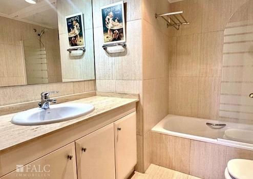 Auf derselben Ebene befinden sich auch die Schlafzimmer. Eines der Zimmer ist großzügig geschnitten und bietet, ebenfalls mit direktem Zugang zur Terrasse, eine gelungene Verbindung zwischen Innen- und Außenbereich. Ein vollständig ausgestattetes Badezimmer steht in diesem Teil der Wohnung zur Verfügung und ist bequem zugänglich. Die Master-Suite ist ein Ort der Entspannung und des Rückzugs: Sie verfügt über ein eigenes Bad en suite und garantiert durch ihre Ausstattung und die ruhige Lage maximale Privatsphäre.