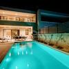 Schlafzimmer, Badezimmer und Technikraum im Außenbereich befinden sich ebenfalls auf dieser Etage. Im ersten Stock befinden sich zwei Schlafzimmer mit jeweils eigenem Bad und einer großen Gemeinschaftsterrasse.