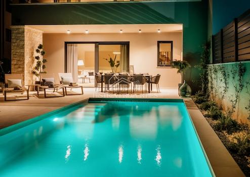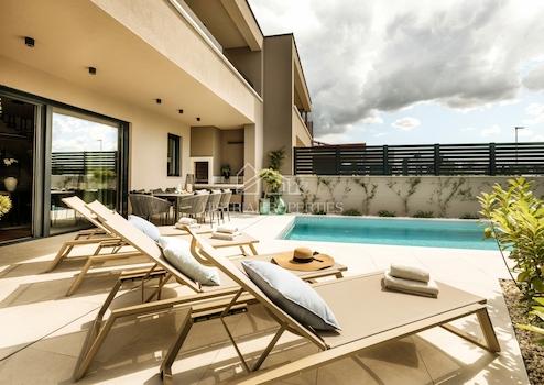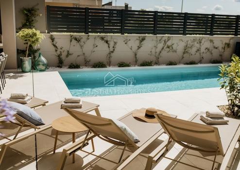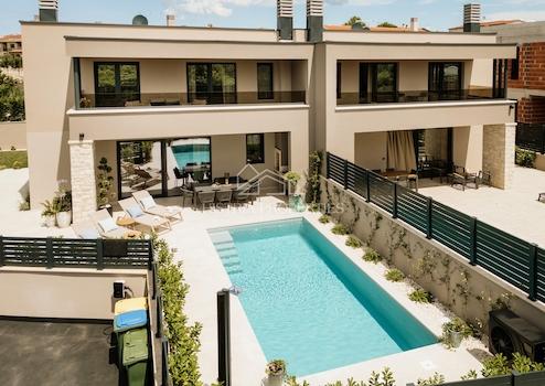 Dieses neue, moderne Haus befindet sich in attraktiver Lage in einem Ferienort mit allen Annehmlichkeiten in der Nähe von Poreč.