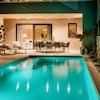 Im Erdgeschoss befindet sich eine Eingangshalle, die mit Wohnzimmer, Küche und Esszimmer verbunden ist. Von hier aus gelangt man auf eine großzügige, überdachte Terrasse mit Sommerküche, Sonnenterrasse und zentral beheiztem Pool.