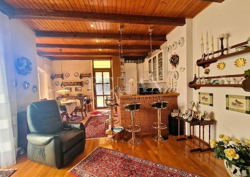 Die Terrasse mit Überdachung, der gepflasterte Gartenbereich und der Außenkamin bieten den idealen Ort zum Entspannen oder geselligen Beisammensein an warmen Tagen. Zur Wohnung gehört auch die Hälfte des ersten Stockwerks des Hauses, der derzeit nicht genutzt wird, aber die Möglichkeit zur Erweiterung oder Schaffung weiteren Wohnraums bietet.