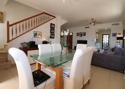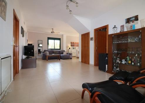 Das Erdgeschoss verfügt über ein beeindruckendes L-förmiges Wohn-/Esszimmer mit einer Treppe zum ersten Stock, eine separate, voll ausgestattete Küche mit Zugang zu einem Hauswirtschaftsraum, drei Doppelzimmer mit Einbauschränken - darunter ein Hauptschlafzimmer mit eigenem Bad - und ein Familien-Duschbad. Im Obergeschoss befindet sich ein offener Bereich, der als viertes Schlafzimmer/Büro genutzt werden kann, sowie Zugang zu einer großen L-förmigen Terrasse mit atemberaubendem Blick über die Salzseen und hinaus auf das Meer - der perfekte Ort, um sich zu entspannen und die mediterrane Umgebung zu genießen.
