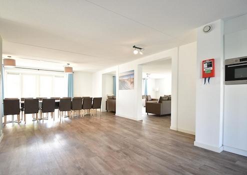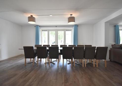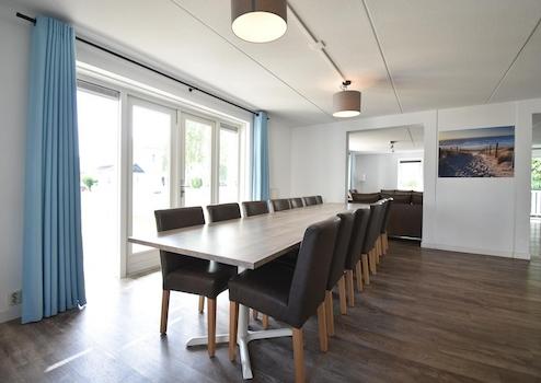 Das imposante Esszimmer bildet das gesellige Herz dieses Ferienhauses und lädt zu stundenlangem Tafeln mit Familie und Freunden ein. Der moderne Esstisch bietet komfortabel Platz für 12 Personen, perfekt für ausgiebige Dinner und gemütliche Spieleabende.