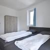 Dieses moderne Schlafzimmer kombiniert Komfort mit Unterhaltung durch den vorhandenen Flachbildfernseher. Das Boxspring-Bett steht zentral im Raum, umgeben von frischer, heller Einrichtung. Der direkte Zugang zum Balkon macht dieses Zimmer besonders attraktiv, vor allem für Gäste, die gerne morgens oder abends draußen sitzen möchten. Eine perfekte Kombination aus Ruhe und Bequemlichkeit.