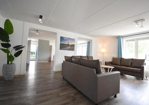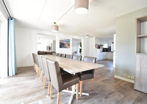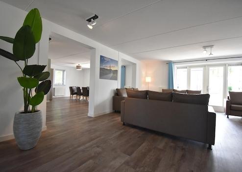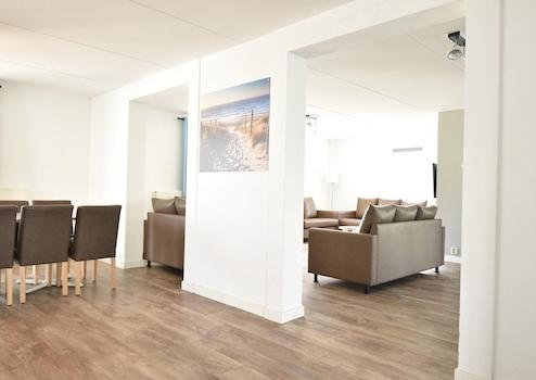 Das Wohnzimmer befindet sich in Piet Hein 214 und bildet zusammen mit dem großen Esszimmer in Piet Hein 216 das perfekte gesellige Herz dieser einzigartigen Doppel-Unterkunft. Durch die offene Verbindung unten entsteht ein großer Lebensraum, wo Komfort und Gemütlichkeit zusammenkommen.