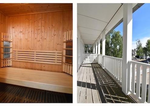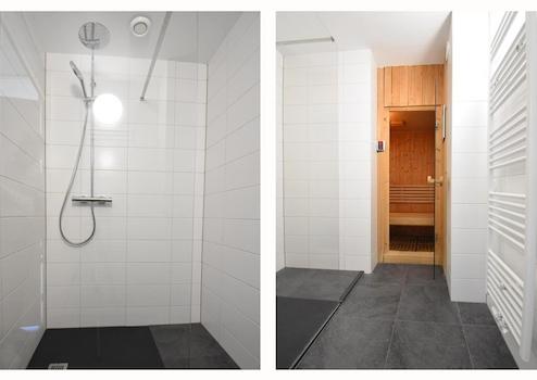 Die strategische Aufteilung integriert alle Einrichtungen nahtlos, während moderne Beleuchtung und Belüftung für optimalen Komfort sorgen. Mit zwei Saunas in einer Unterkunft bieten Sie Gästen ein Wellness-Erlebnis, das sie nirgendwo anders finden.