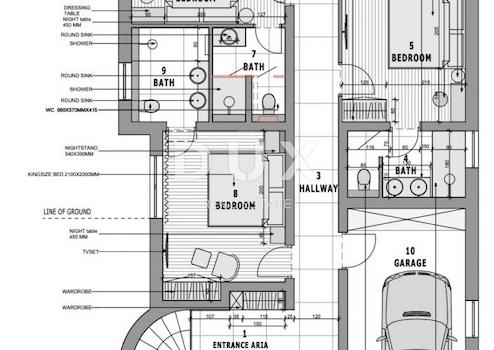 Wir verkaufen eine wunderschöne im Bau befindliche Villa direkt am Strand. Es besteht aus zwei Etagen und einem organisierten Garten. Im Erdgeschoss befinden sich Wohnzimmer, Räume für die Haushaltsführung, eine Garage für zwei Autos, eine Liegewiese, ein Schwimmbad und weitere Einrichtungen für die täglichen Aktivitäten. Privatzimmer befinden sich im ersten Stock; 4 Schlafzimmer mit eigenem Bad mit Zugang zu einem großen Balkon mit herrlichem Blick auf das Meer. Das Haus verfügt über ein intelligentes Verwaltungssystem, das die Instandhaltung der Immobilie erleichtert und den Komfort erhöht. Sisem Loxone Smart Home kann per Schalter, Smartphone, Tablet (Fernzugriff) oder Computer gesteuert werden. Die Villa ist mit einer Wärmepumpe zum Heizen und Kühlen mit hoher Energieeffizienz ausgestattet und trägt zum hohen Wohnkomfort bei. Die internen Heiz- und Kühleinheiten der Anlage sind in der abgehängten Decke untergebracht, was die visuelle Identität des Innenraums der Anlage verbessert. Auch die Warmwasserbereitung erfolgt über eine Wärmepumpe. Dieses System trägt zur hohen Energieeffizienz der Villa selbst bei und schont so die Umwelt. Im Garten gibt es einen beheizten Überlaufpool. Der Pool wird durch eine Wärmepumpe beheizt, die unabhängig von der Wärmepumpe zum Heizen und Kühlen des Gebäudes dient.