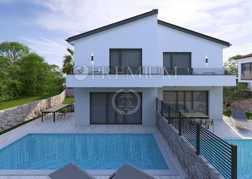 Malinska, Doppelhaushälfte mit Pool und Meerblick