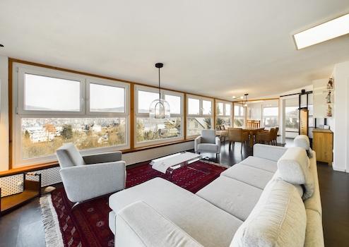Das Raumkonzept überzeugt durch großzügige Wohn- und Freiflächen, die mit hochwertigsten Materialien gestaltet wurden. Der offene Wohnbereich besticht durch große Panoramafenster, die ein einzigartiges Wohngefühl schaffen und die Innenräume lichtdurchfluten. Die Küchen sind funktional ausgestattet und biete ausreichend Möglichkeiten für Kochliebhaber. Die drei großzügigen Badezimmer lassen aufgrund guter Ausstattung keine Wünsche offen.