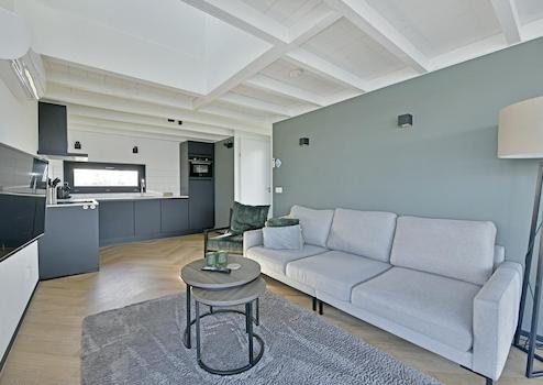 Die moderne offene Küche fügt sich harmonisch in den Wohnbereich ein und bildet das Herzstück des Hauses. Ausgestattet mit hochwertigen Einbaugeräten und einem praktischen Quooker, ist sie ideal zum Kochen, Genießen und Zusammensein. Ob entspannte Stunden mit einem Buch oder gesellige Abende mit Freunden – dieses Wohnzimmer bietet Raum für echte Lebensqualität.