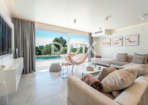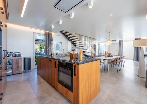Im Herzen Ostistriens, am Rande der Bauzone, umgeben von Ruhe und Grün, befindet sich diese hervorragend ausgestattete Villa mit beheiztem Pool, Whirlpool und Wellnessbereich. Vor dem Haus befindet sich eine mit Lavendel und Feigenfeldern geschmückte landwirtschaftliche Fläche, die eine schöne Kombination aus natürlicher Landschaft und dem Komfort einer modernen Villa schafft. Die Villa erstreckt sich über ein großzügiges Grundstück von 1572 m² und verfügt über insgesamt 290 m² Nettofläche, die sich auf zwei Etagen verteilen. Im Erdgeschoss befindet sich ein geräumiges Wohnzimmer mit großem Smart-TV, PlayStation-Konsole und gemütlicher Sitzecke, verbunden mit einem Esszimmer für acht Personen und einer modern ausgestatteten Küche mit Geräten der Spitzenklasse. In der Nähe befindet sich ein separates Arbeitszimmer, perfekt für alle, die auch im Urlaub Privatsphäre und Konzentration brauchen. Zwei luxuriöse Schlafzimmer im Erdgeschoss, eines davon behindertengerecht, verfügen über ein eigenes Bad und Zugang zu einer Terrasse. Im Obergeschoss befinden sich zwei weitere Schlafzimmer mit eigenem Bad, Ankleidezimmer und Zugang zu einer geräumigen Terrasse mit Panoramablick auf Weinberge, Olivenbäume und Lavendel. Alle Badezimmer sind mit modernen Sanitäranlagen und Designerdetails ausgestattet. Ein besonderes Erlebnis bietet der Wellnessbereich im Erdgeschoss mit einer finnischen Sauna für fünf Personen, zwei beheizten Keramikliegen und Farbtherapiebeleuchtung. Die Villa verfügt außerdem über einen Wasch- und Trockenraum, eine Gästetoilette und einen überdachten Parkplatz. Im Außenbereich befinden sich ein beheizter Swimmingpool, umgeben von einem Sonnendeck mit acht Liegen, ein Whirlpool für fünf Personen, eine Außendusche und ein üppig gestalteter Garten mit mediterranen Pflanzen. Eine überdachte Sommerküche mit Grill und Esstisch lädt zu gemütlichen Zusammenkünften und Abendessen im Freien ein, während die Terrasse mit Loungemöbeln den Blick auf Sonnenuntergänge und Vogelgezwitscher bietet. Für zusätzliche Aktivitäten steht ein privater kleiner Fitnessraum mit Multistation-Geräten und Gartenschach zur Verfügung. Die Villa ist mit WLAN, Videoüberwachung, intelligenten Thermostaten, einer Gegensprechanlage mit Türfernöffnung, einer Wärmepumpe und Fußbodenheizung ausgestattet und gewährleistet so das ganze Jahr über absolute Sicherheit und Komfort. Das Haus liegt in einer eleganten Straße mit asphaltierter Zufahrt, vollständiger Infrastruktur und öffentlicher Beleuchtung. Nur 5 Autominuten entfernt befinden sich eine Apotheke, Geschäfte und Einkaufszentren sowie renommierte Restaurants wie Ferali, Ostaria Tomažić und 3 Murve. Die Strände von Rabac sind in 15 Minuten erreichbar, während Tunarica eine 20-minütige Fahrt entfernt ist. Dieser Standort ist ein idealer Platz für ein neues Familienleben, da Kindergärten und Schulen ebenfalls nur 5 Minuten entfernt sind. Die Villa verfügt über eine Nutzungsgenehmigung, ist ein Ganzjahreswohnkonzept und eignet sich ideal für ein ruhiges Familienleben oder als Investition in eine touristische Vermietung mit hervorragenden Bewertungen. Um einen Besichtigungstermin der Immobilie zu vereinbaren, rufen Sie den Makler vertrauensvoll an – eine Beratung auf Deutsch ist möglich.