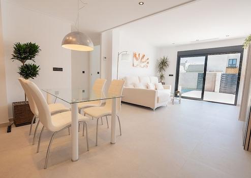 Die Häuser werden in hervorragender Qualität erbaut und bieten Wärmedämmung und Schallschutz entsprechend der neuesten Bauvorschriften, Fenster mit Doppelverglasung und elektrischen Rollläden, Klimaanlage, Innen- und Außenbeleuchtung, Badezimmer mit Porzellanelementen, Möbeln und Glasduschtrennwänden, Einbauschränke in den Schlafzimmern, Einbauküchen mit Dunstabzugshauben und vieles mehr. Darüber hinaus gehören zu jeder Wohneinheit ein privater Kfz-Stellplatz und ein Privatpool.