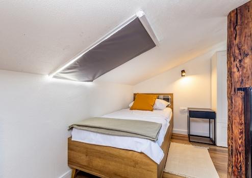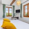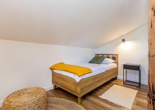 Im Parterre befinden sich das Wohnzimmer, ein Badezimmer und eine Küche mit einer Essecke, die eine Tür zur Sonnenterrasse hat. Im Obergeschoss befinden sich zwei Schlafzimmer mit Doppelbetten und ein Badezimmer. Der Dachboden ist ein offener Raum mit zwei Einzelbetten (200x90 cm).