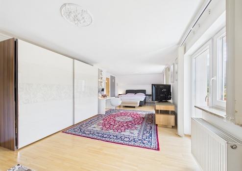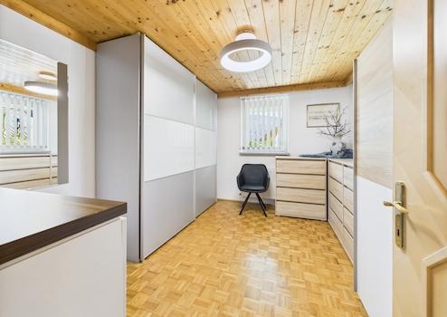 Besonders komfortabel präsentiert sich das Schlafzimmer mit angeschlossenem Badezimmer und begehbarem Ankleideraum – ein privater Rückzugsort mit hoher Wohnqualität. Die neuen Fenster (3-fach Verglasung Kunststoff) sorgen für lichtdurchflutete Räume und eine moderne Anmutung.