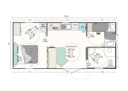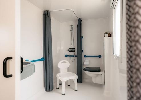 Das IRM Life Chalet wurde speziell entwickelt für maximalen Komfort und uneingeschränkte Bewegungsfreiheit. Mit breiten Schiebetüren, großzügigem Raumangebot und einer durchdachten Raumaufteilung erfüllt es die Empfehlungen des französischen Verbands „Tourisme & Handicaps“. Alle Wohnbereiche – vom Wohnzimmer über die Küche bis zu den Schlafzimmern – bieten ausreichend Wendefläche für Rollstuhlfahrer. Die offene Küche ist funktional gestaltet und ermöglicht komfortables Kochen und Bewegen. Die Badezimmerausstattung ist ebenfalls auf Barrierefreiheit ausgelegt. Ein modernes, vollelektrisches Chalet für alle, die Raum, Ruhe und Zugänglichkeit miteinander verbinden möchten. Ausstattungs-Highlights: - 2 großzügige Schlafzimmer mit 150 cm Wendekreis - Rollstuhlgerecht nach Empfehlungen von „Tourisme & Handicaps“ - Schiebetüren und fließende Übergänge zwischen allen Räumen - Heller Wohnbereich mit fester Sitzecke und Esstisch - Offene Küche mit viel Bewegungsfreiheit - Angepasstes Badezimmer mit komfortabler Ausstattung - Pflegeleichte Materialien - Komplett elektrisch – ganz ohne Gas - Ideal für Eigennutzung oder barrierefreien Ferienvermietung Einzigartig in seiner Klasse, ideal für entspannte Ferien mit Komfort und Zugänglichkeit. Erleben Sie das IRM Life – stilvoll, durchdacht und bereit zum Einziehen.