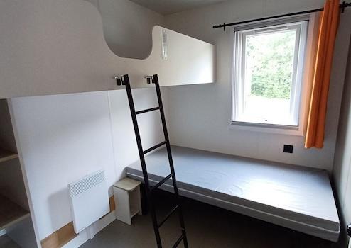 Praktisches zweites Schlafzimmer mit Etagenbett und zusätzlichem Stauraum. Perfekt für Kinder oder Gäste.