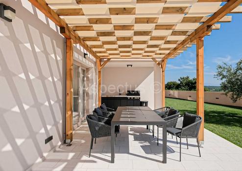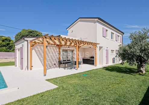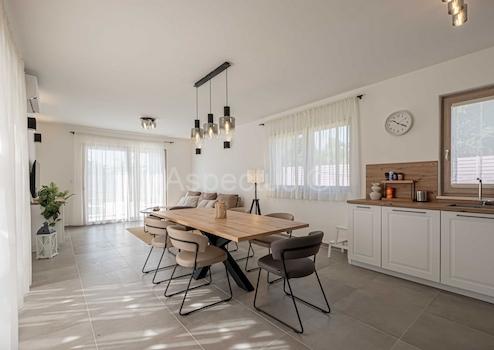 Wir verkaufen ein neu erbautes, modernes, komplett möbliertes Einfamilienhaus in der Gemeinde Marčana, gelegen in einer ruhigen, grünen Umgebung in der Nähe des historischen Dorfes Mutvoran – eines der verborgenen Juwelen Istriens. Das Haus wird vollständig möbliert verkauft und ist bezugsfertig. Es besticht durch seine aussergewöhnliche Helligkeit und den ganzen Tag über reichlich natürliches Licht. Besonders angenehm ist die Atmosphäre in den Abendstunden, dank des einzigartigen Mikroklimas dieser Gegend.