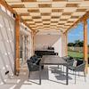 Das Haus besteht aus einem Eingangsbereich, Flur, Hauswirtschaftsraum, Gäste-WC, Küche mit Essbereich, einem grosszügigen Wohnzimmer mit Zugang zu einer grossen Terrasse mit Vorbereitung für eine Aussenküche, drei geräumigen Schlafzimmern und zwei modern ausgestatteten Badezimmern. Ausgestattet ist es mit Fussbodenheizung über eine Wärmepumpe sowie einem beheizten Aussenpool (24 m²) mit eigener Wärmepumpe. Der Garten wird automatisch bewässert, und die Rasenpflege ist völlig mühelos – ein Mähroboter schneidet täglich den Rasen und hält das Grundstück stets perfekt gepflegt.