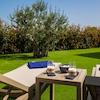 Beim Betreten führt eine geräumige Garage in ein durchdachtes Interieur. Hier befinden sich ein Eingangsbereich, ein Gäste-WC sowie zwei Schlafzimmer mit jeweils eigenem Bad – ideal für Familie oder Gäste. Der zentrale Bereich des Erdgeschosses ist als offener Wohn-, Koch- und Essbereich gestaltet, der nahtlos auf eine elegante Terrasse übergeht, ausgestattet mit einer zusätzlichen Küche, Sonnenliegefläche und einem beeindruckenden Infinity-Pool mit 40,68 m².