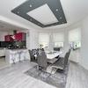 Küche, Esszimmer und Wohnzimmer mit Ausgang auf die überdachte Terrasse und in den Garten